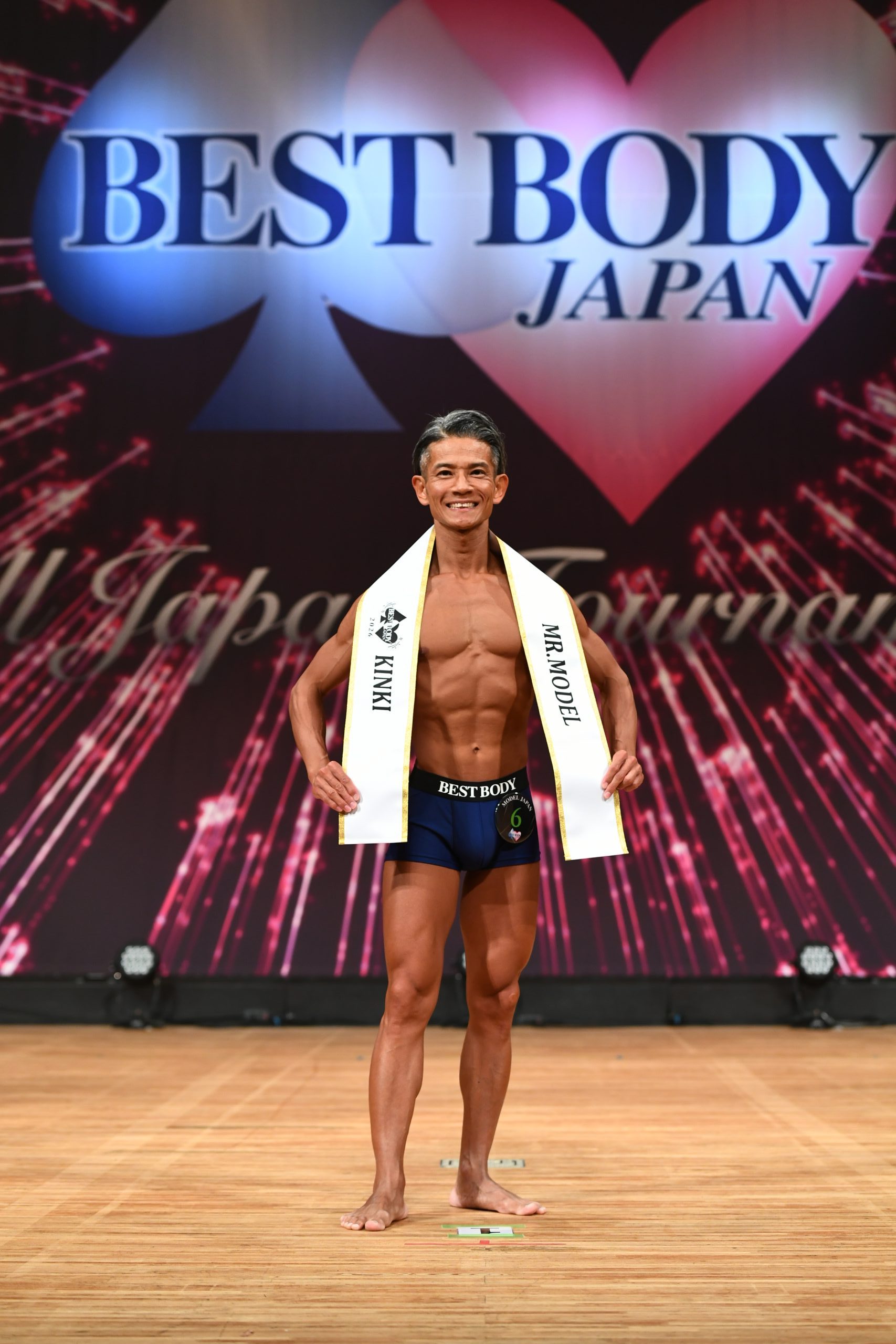 ベストボディ・ジャパン2026近畿大会 入賞者 HOME 大会結果 2026 , モデルジャパン ベストボディ・ジャパン2026近畿大会 入賞者 ベストボディ・ジャパン2026近畿大会 入賞者《モデルジャパン部門》 フレッシャーズクラス(18歳〜29歳) 1位:西澤 大地 (滋賀県) 【290点】 2位:松波 鯨也 (大阪府) 【280点】 3位:大見 駿介 (石川県) 【240点】 4位:西村 真幸 (兵庫県) 【210点】 5位:高橋 瑠希弥 (大阪府) 【180点】 ガールズクラス(18歳〜29歳) 1位:秋山 結奈 (大阪府) 【290点】 2位:中村 葉月 (大阪府) 【280点】 ミドルクラス(30歳~39歳) 1位:小野 祐樹 (大阪府) 【300点】 2位:上村 大輔 (大阪府) 【270点】 3位:北村 拓矢 (大阪府) 【240点】 4位:藤川 祐輔 (大阪府) 【210点】 5位:三好 修平 (大阪府) 【120点】 レディースクラス(30歳~39歳) 1位:桂巻 綾乃 (愛知県) 【290点】 2位:石塚 知子 (兵庫県) 【280点】 マスターズクラス(40歳〜49歳) 1位:要 太一 (兵庫県) 【300点】 2位:三枝 祐 (大阪府) 【270点】 3位:関 大介 (和歌山県) 【240点】 4位:田村 裕 (兵庫県) 【210点】 5位:大橋 範幸 (京都府) 【120点】 ウーマンズクラス(40歳〜49歳) 1位:杉浦 麻紀子 (愛知県) 【300点】 2位:谷 幸子 (東京都) 【270点】 ゴールドクラス(50歳〜59歳) 1位:藤高 賢次 (大阪府) 【290点】 2位:永原 茂 (大阪府) 【280点】 3位:服部 達也 (神奈川県) 【230点】 4位:緒方 秀明 (兵庫県) 【220点】 5位:頓名 昌宏 (兵庫県) 【120点】 レジェンドクラス(60歳~年齢無制限) 1位:橋本 浩一 (大阪府) 【300点】 2位:高倉 富美夫 (滋賀県) 【270点】 3位:川村 司 (奈良県) 【240点】 プラチナクラス(60歳~年齢無制限) 1位:竹本 久仁子 (兵庫県) 【290点】 2位:山家 幸子 (大阪府) 【280点】 3位:奥田 美紀 (大阪府) 【240点】 ベストボディ・ジャパン2026近畿大会 入賞者 ベストボディ・ジャパン2026近畿大会 入賞者